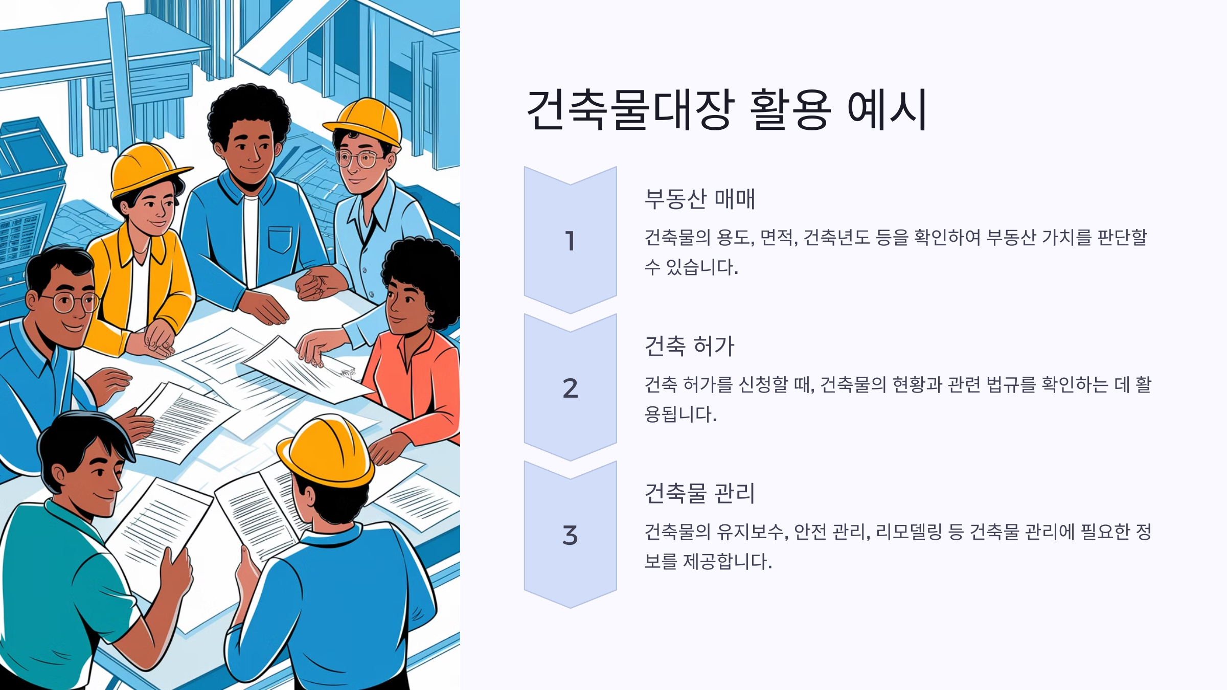 건축물대장은 건축물의 주요 정보를 체계적으로 기록해둔 공적 장부로, 부동산 관련 거래나 행정 절차에서 중요한 자료로 활용돼요. 국토교통부에서 관리하며, 건축물의 법적 상태, 구조, 용도, 면적 등을 확인할 수 있는 공식 문서랍니다. 건축물대장은 집이나 상가 같은 부동산을 매매하거나 임대할 때 반드시 확인해야 할 핵심 자료로, 안전성과 법적 상태를 파악하는 데 필수적이에요.